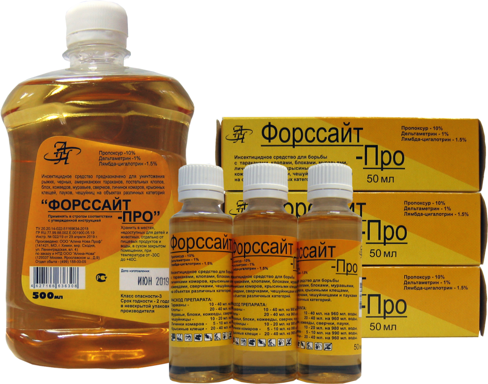 для уничтожения всех видов иксодовых клещей — переносчиков возбудителей клещевого энцефалита и клещевого боррелиоза. Кроме того, концентрат высокоэффективен против летающих насекомых – комаров, мух